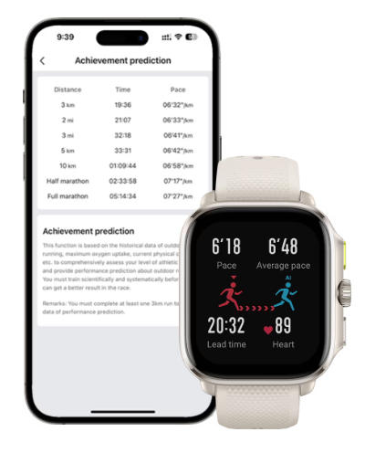 Szeretnéd kipróbálni magad? Állíts be egy AI tempócélt a Virtual Pacer-ben, és nézd meg, hogyan teljesítesz. Ha már van néhány futásod, és szeretnéd látni, hogyan teljesítenél egy valódi versenyen, nézd meg a Zepp alkalmazásban a Race Achievement Predictions (Versenyteljesítmény-előrejelzések) című programot.